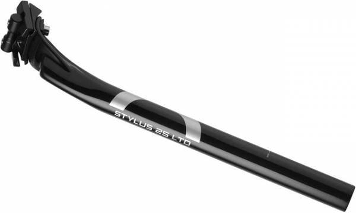 Stylus is a fresh new take on the 2-bolt seatpost. The transition from the pillar to the saddle clamp assembly is a finned, rearward swoosh suggestive in shape of the classic one-bolt posts of yore. But the clamp bolts are deployed to either side of the saddle-support cradle, conferring greater stability and easier adjustment. Stylus–0 models place the seat clamp assembly in line with the seatpost for zero setback. Many athletes seeking outright speed favor this more forward position on the bike. Some frame designers are also specifying a slacker seat tube so riders can set their bike up with an inline post, which is lighter than a setback post.