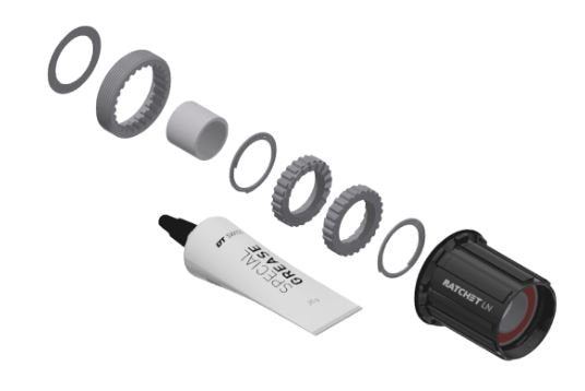 Upgrade kit to transform DT Swiss 3-pawl hubs and 1800 level wheels into 18T star ratchet hubs
