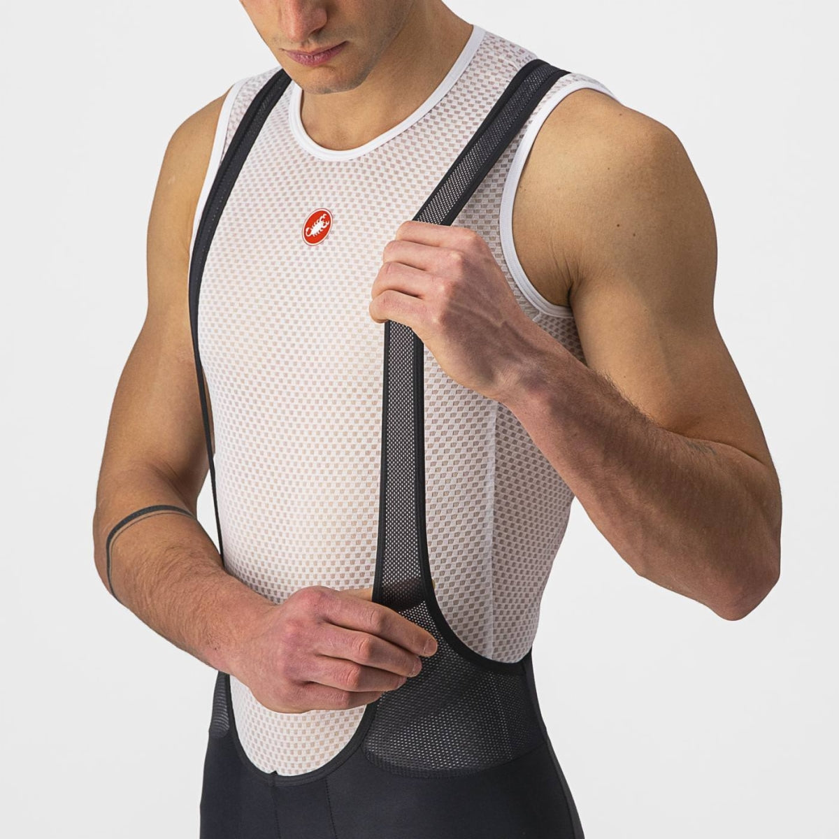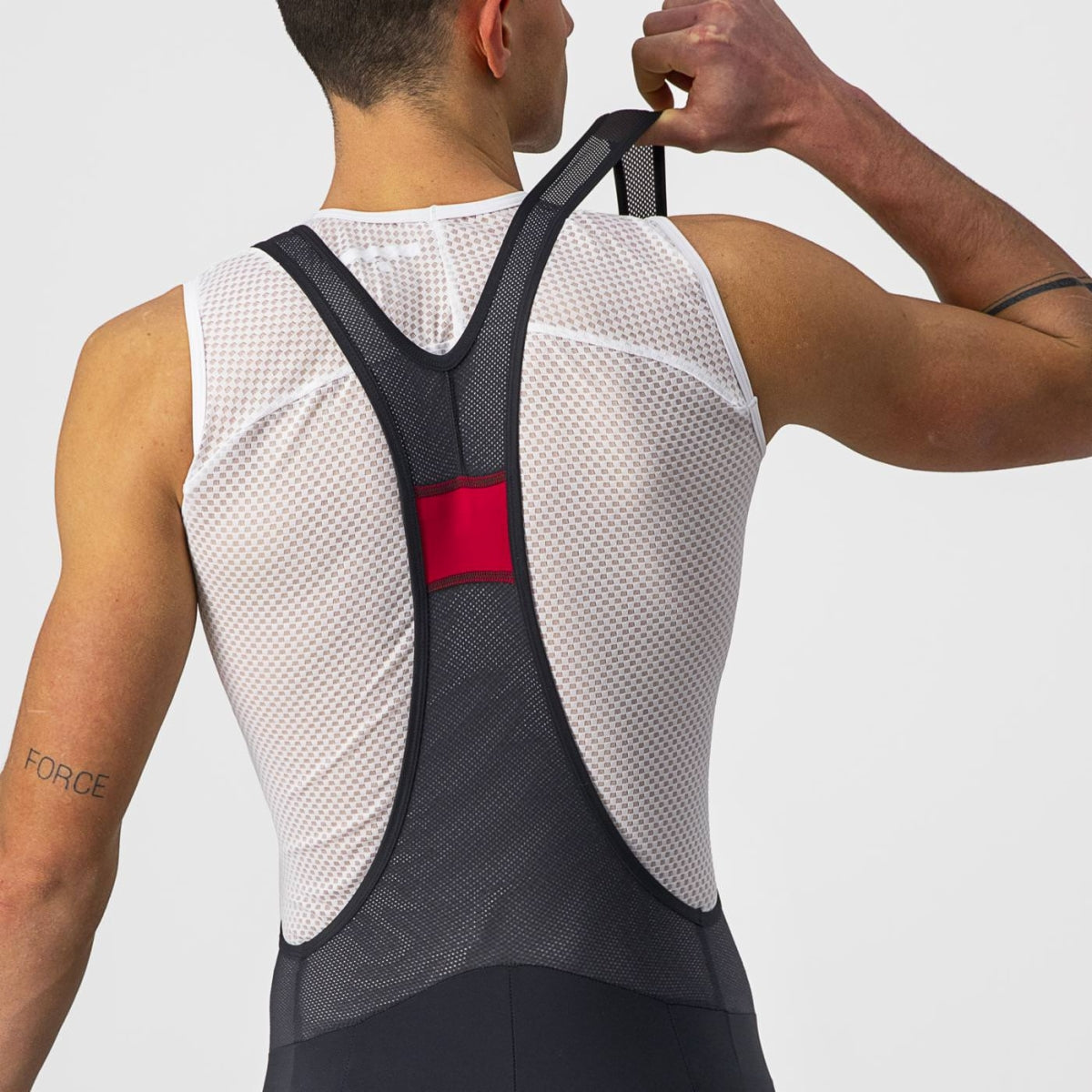 Castelli has innovation in our DNA, and we've brought you most innovations in cycling shorts over the years: the first Lycra® shorts on the market, the first synthetic seat pads, the first anatomical seat pads, the first minimalist and flat bib straps, and the first flat leg grippers. All these have become industry standards, and we keep pushing and innovating in our high-end shorts. The Entrata short is where we bring all that knowledge and experience into a short that just plain works. The fabric is just the right weight with just the right stretch and with a matte finish that looks just right.