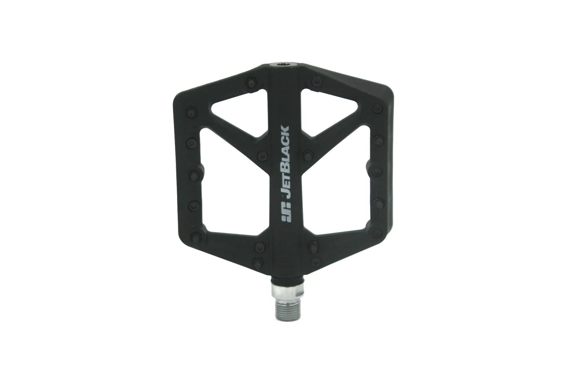 Engineered for performance and durability, the JetBlack Thermolite MTB Pedals offer a lightweight yet rugged design for mountain bikers seeking superior grip and control. With a fiber-reinforced nylon body and a Cro-Moly axle, these pedals provide strength without excess weight. Sealed bearings and IGUS DU bushings ensure smooth rotation and longevity, making them perfect for all-terrain riding.