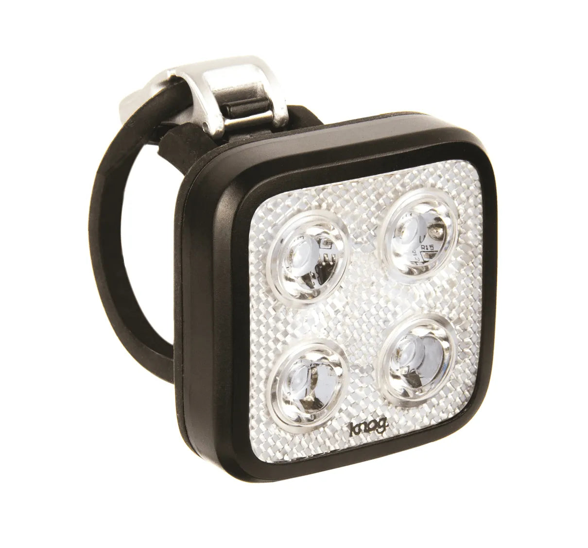 Bright, urban bike light ideal for daily commutes. Outputting 80 lumens of light, the Four Eyes front bike light ensures you are well seen to road riders up to 1.2 kilometers away. With its focused 35 degree beam, reflective faceplate, long battery life, 5 different light modes (2 constant & 3 flash), and interchangeable straps, you’re guaranteed to light up all night long, no matter where you ride.