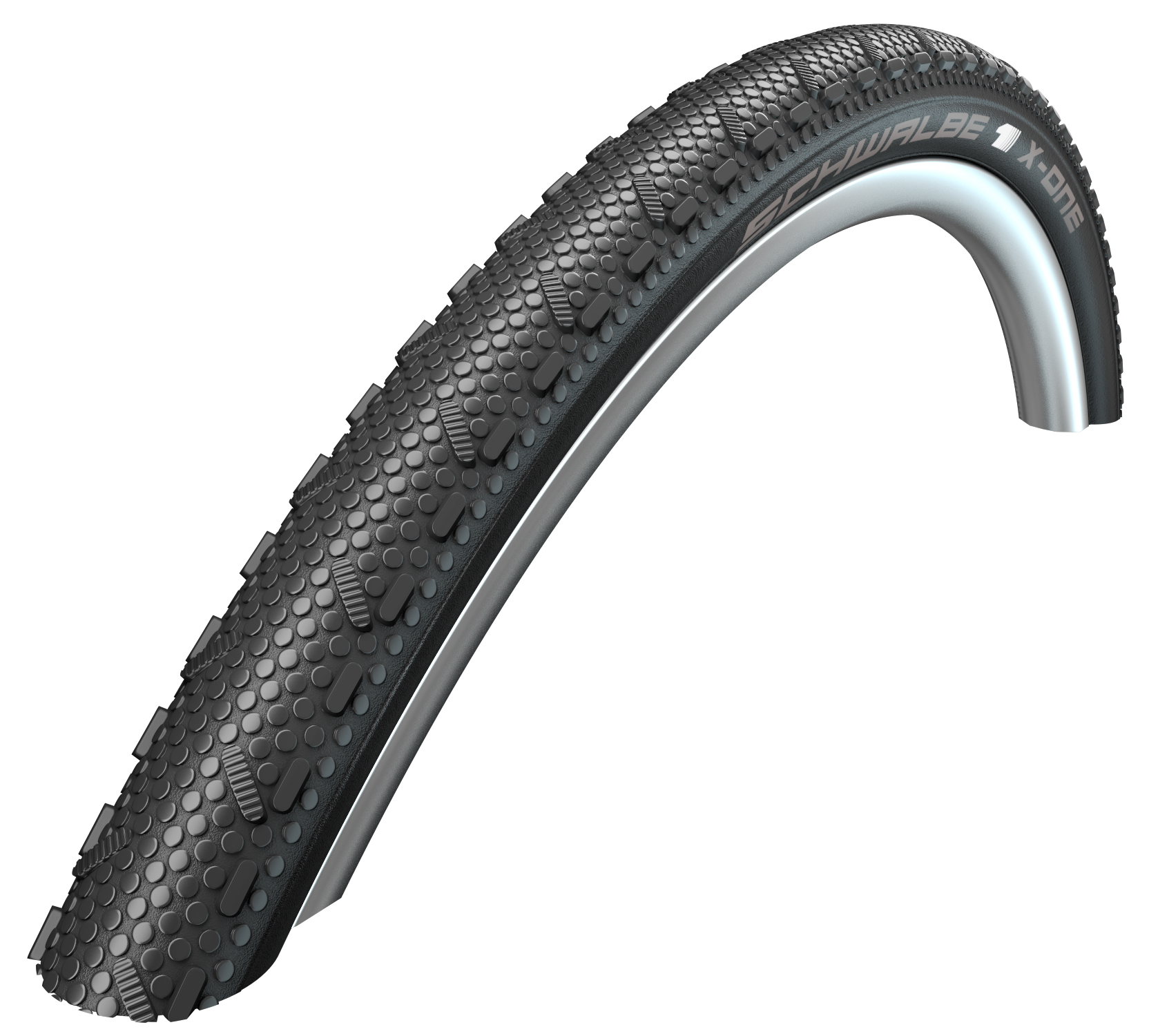 To meet the various demands on asphalt and woodland trails, for relaxed touring and competition, Schwalbe offers a cross range made up of X-One Allround, X-One Bite and the new X-One Speed. With its OneStar compound and low weight, it’s designed entirely for speed. Its flat round dimples are supported by innovative multi-rib blocks, ensuring safe traction on dry tracks, with vertical outer studs providing stability when cornering. These features make the X-One Speed the fastest cross tyre in the product family for competition and ambitious riding on asphalt and dry off-road tracks.