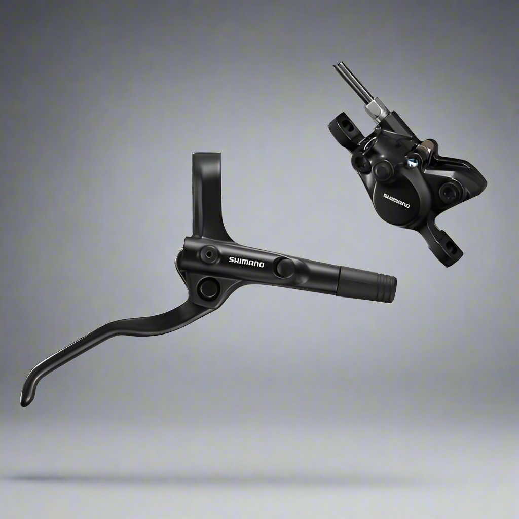 The Shimano BR-MT200 hydraulic disc brake with its 3-finger brake lever sets the standard for affordable, high-performance braking. Designed for MTB and trekking, it delivers high braking power with precise modulation. Featuring opposing pistons that reduce vibrations and using eco-friendly natural mineral oil, this system ensures a smooth, silent, and reliable braking process.