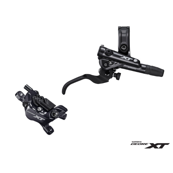 The Shimano Deore XT M8120 front disc brake set gives you bloody good quality braking power. The Deore XT M8100 right lever is perfect for a variety of flat bar bicycles but is aimed at mountain bikes. With the Shimano Deore XT Trail BR-M8120 Front Disc Brake & BL-M8100 Right Lever you'll experience Shimano's leading braking modulation resulting in more confidence in your riding.