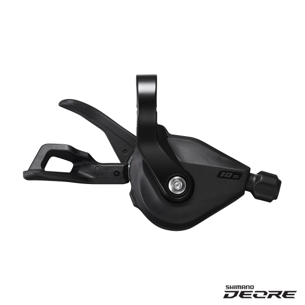 Formed from the same DNA as its big siblings: DEORE SL-M4100 10-speed Shift Lever from Shimano. The DEORE 10-speed right-side shifter benefits from the same technologies as XTR, DEORE XT and SLX; I-SpecEV. This offers you greater ergonomic adjustments so you can tailor your handlebar con-trols much more to your liking. Together with the speed of RAPIDFIRE PLUS and a TWO-WAY RE-LEASE feature you can shift up and down the 10 gears of your cassette faster than ever before.