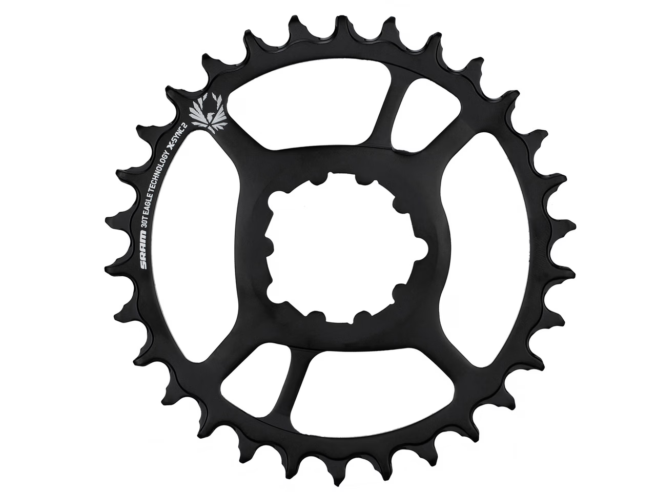 The longer, positive-rake tooth shape of the Sram X-Sync 2 Eagle SL Chainring has been designed to work perfectly with the new Eagle™ chain to increase chain retention and overall pedaling efficiency, while decreasing friction, noise and wear.