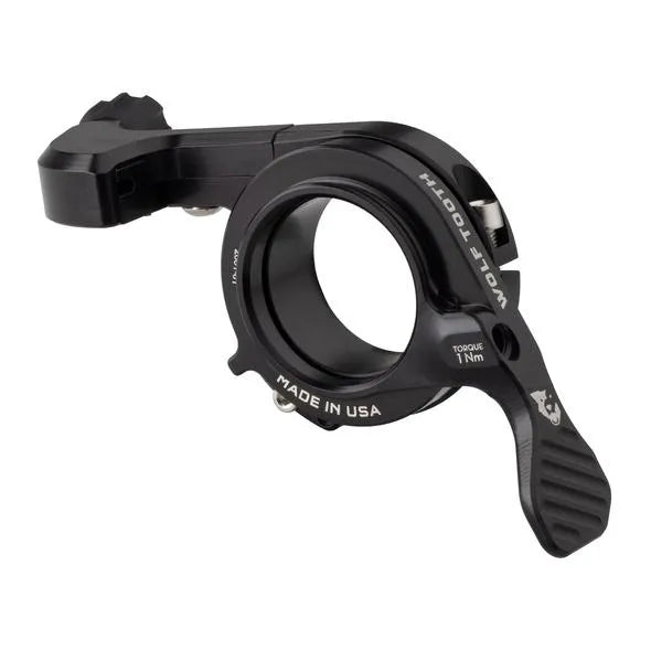 The ReMote BarCentric™ is a dropper lever option for bikes with front shifters, lockout levers, or e-bike controls. The slender design of the ReMote BarCentric allows it to easily fit between the left grip and levers with four potential lever positioning options to avoid any interference with existing levers. This dropper lever has a ring shape that encompasses the handlebar, while also serving as a pivot point to provide the rider with extra leverage, making it easier to press the lever.