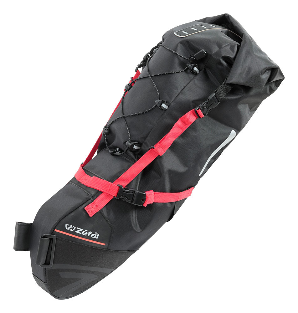 The Z Adventure bags are designed to carry a large volume of items without the need for a rear rack. Equipped with several durable self-adhesive straps and anti-tear material on its base, they attach to the saddle rails and seat post for optimal weight distribution on the bicycle. Designed for cyclists doing light tours or competing in endurance competitions. Equipped with reflective strips and an attachment loop for lights, the Z Adventure saddle bags are ideal for carrying light, large-sized items such as clothing. The folding closure and waterproof fabric with heat-sealed interior can safely carry all the equipment needed for a tour.